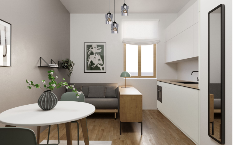 - Kompletní rekonstrukce – moderní standardy, kvalitní materiály a citlivé provedení v tradičním činžovním domě.