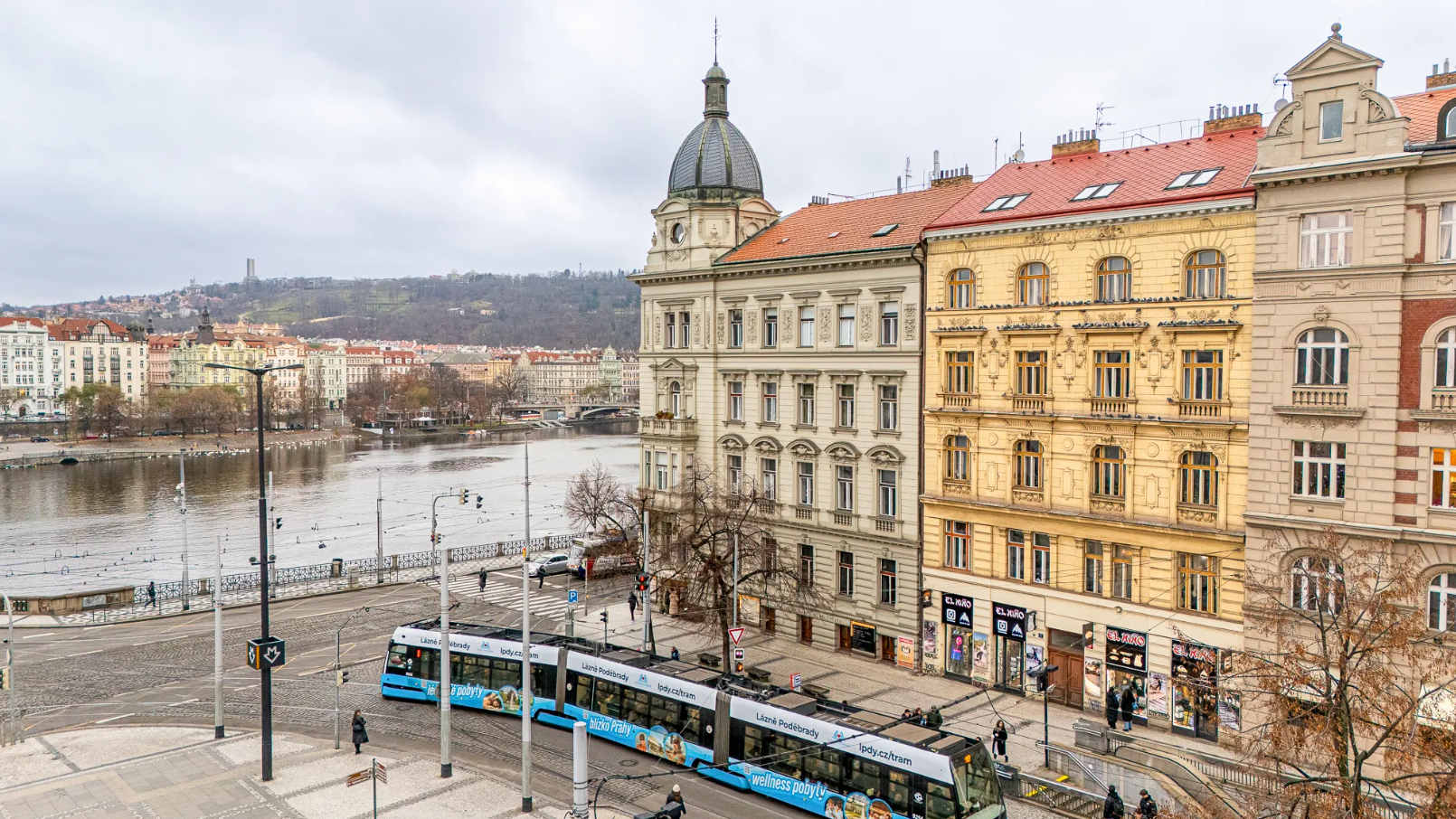 - Prémiová lokalita v centru Prahy – reprezentativní adresa přímo u Vltavy s výbornou dostupností MHD i pěšky.