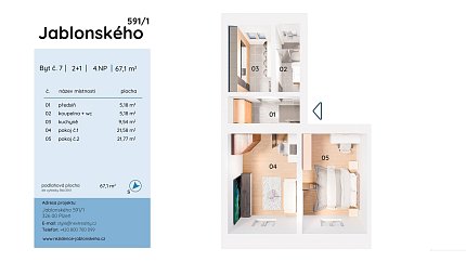 Prodej bytu 1+1 39 m², Jablonského, Plzeň-Východní Předměstí