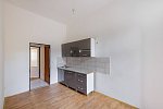 Bytová jednotka disponuje 39,70 m2 podlahové plochy a nachází se v 2.NP činžovního domu. Dispozice: pokoj (21,31m2), kuchyň (11,55m2), koupelna (2,48m2), WC (1,35m2), komora (1,22m2), balkon (1,79m2)