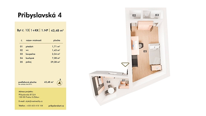 Prodej bytu 1+1 43 m², Přibyslavská, Praha-Žižkov