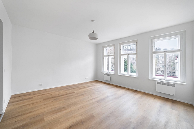 Tento světlý byt disponuje pokojem (24,19 m²), obytnou kuchyní (10,8 m²), předsíní (2,31 m²), koupelnou (1,75 m²) se sprchovým koutem a samostatným WC (2,08 m²), nabízí velice zajímavou investiční příležitost, nehledě na současný i budoucí růst cen nemovitostí v Praze.