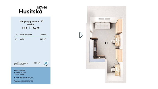 Prodej bytu 1+kk 14 m², Husitská, Praha-Žižkov