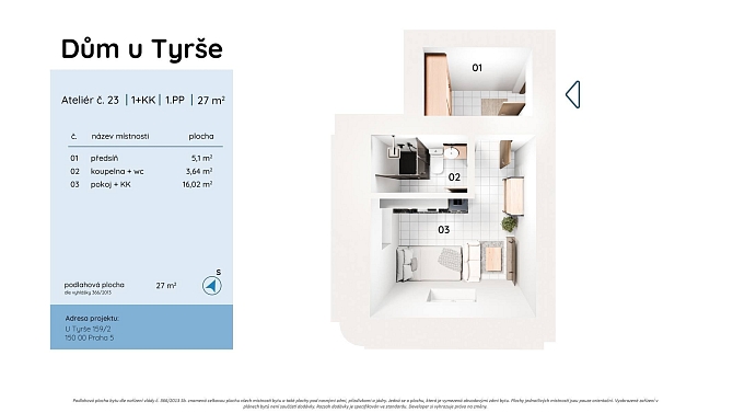 Prodej bytu 1+kk 25 m², U Tyrše, Praha-Košíře
