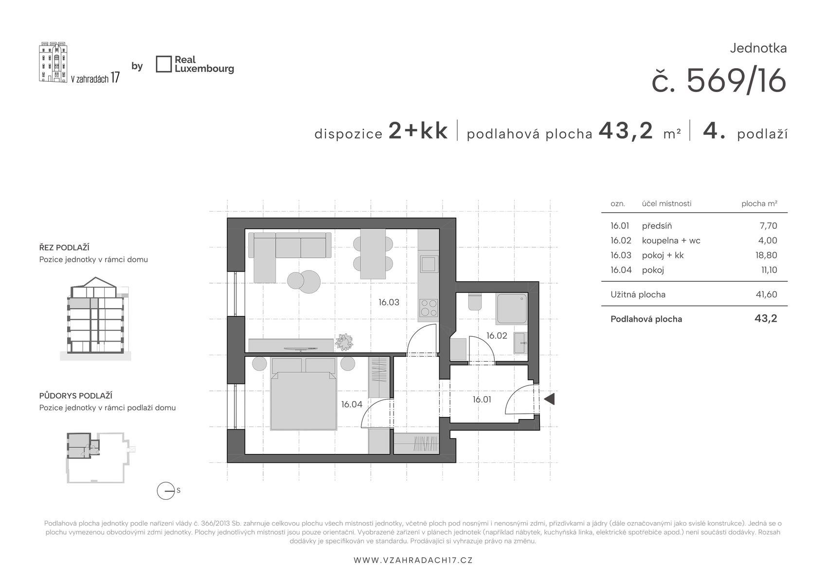 Tento byt, který je součástí projektu V Zahradách 17 v Pražské Libni o dispozici 2+KK, podlahové ploše 43,2 m2 se nachází ve 4. nadzemním podlaží kompletně zrekonstruovaného činžovního domu s výtahem. Má jihovýchodní orientaci a jeho okna míří do ulice.