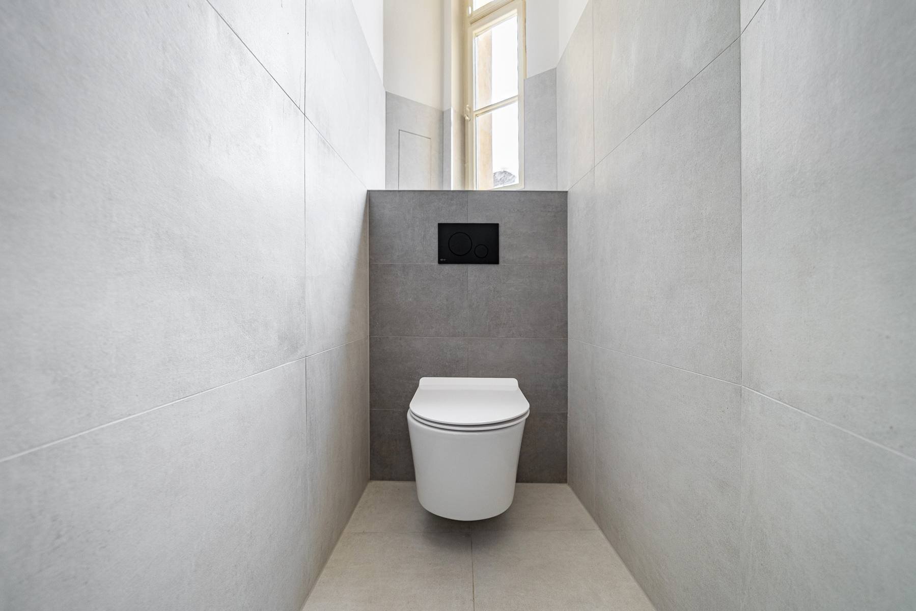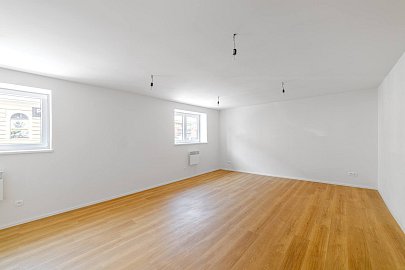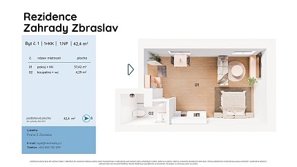 Po vstupu do bytu se ocitnete v předsíni (1, 9m2), odkud vedou jedny dveře na samostatnou toaletu (1,8m2) a druhými dveřmi vstoupíte do obytné kuchyně (16,07 m2) s kuchyní. V této místnosti je umístěna i moderní koupelna (1,6 m2) se sprchovým koutem a umyvadlem. Dále z obytné kuchyně vstoupíte do druhého prostorného pokoje (21,89 m2). Tím, že je byt situovaný jak do vnitrobloku, tak do klidné ulice, je velmi světlý.
