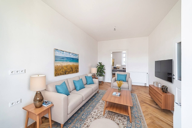 Historický dům z počátku 20. století se nachází na Vinohradech, jedné z nejprestižnějších pražských lokalit, v těsné blízkosti náměstí Jiřího z Poděbrad. Aktuálně prošel kompletní rekonstrukcí, která kombinuje historii s moderními trendy a vysokými nároky na pohodlné bydlení dnešní doby.