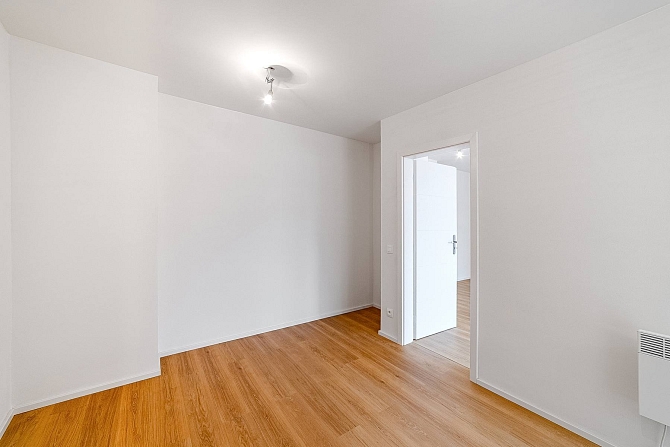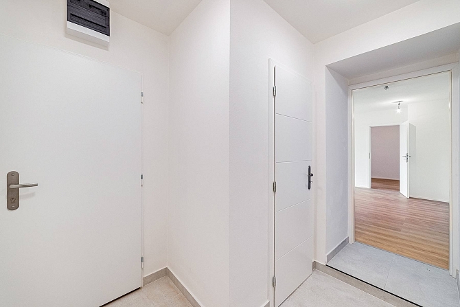 Dispozičně byt nabízí prostorný obývací pokoj s přípravou na kuchyňský kout, ložnici, koupelnu se sprchovým koutem, samostatnou toaletou a předsíň. Všechny místnosti jsou světlé a dobře řešené. Vchod na terasu je z obývacího pokoje, terasa navazuje na předzahrádku s východní orientací.