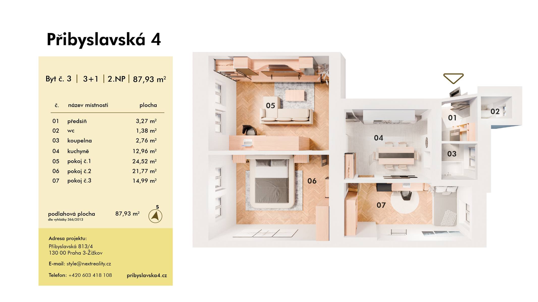 Prodej bytu 3+1 88 m², Přibyslavská, Praha-Žižkov