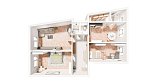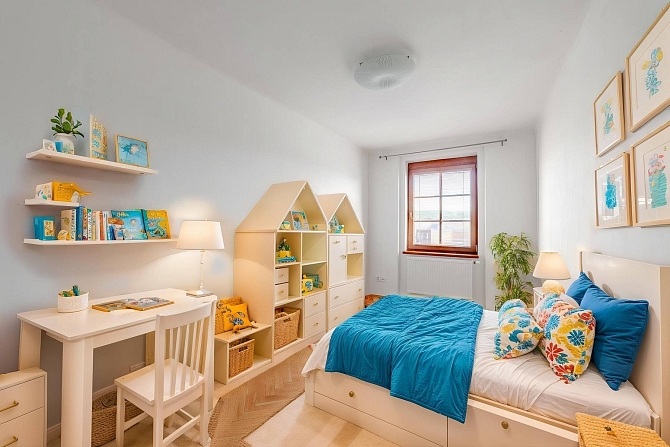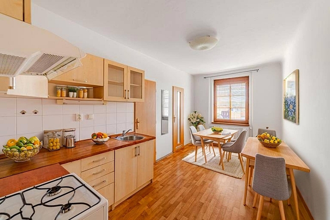 Byt má ideální rodinnou dispozici 4+kk s podlahovou plochou 89,7 m2. Skládá se ze třech plnohodnotných pokojů s plochami 19,7 m2, 17 m2 a 12,5 m2, prostorné kuchyně (13,2 m2) kam se ideálně vejde jídelna pro celou rodinu, předsíně, resp. chodby (11,2 m2), dvou koupelen, jedna s vanou (2,95 m2) a druhá se sprchovým koutem (1,5 m2), samostatné toalety (1,5 m2) a prostornou komorou (2,9 m2), „špajskou“, přístupnou přímo z kuchyně.