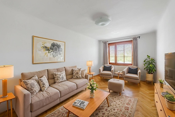 V exkluzivním zastoupení majitele vám nabízíme ke koupi krásný a prostorný byt, vhodný jak pro komfortní plnohodnotné rodinné bydlení, tak jako velice zajímavá investice nebo zajištění bydlení pro své děti do budoucna.
