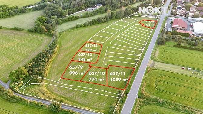 5 samostatných pozemků pro výstavbu - 799 m2 / 848 m2 / 884 m2 / 996 m2 / 1059 m2 - prodej zahájen