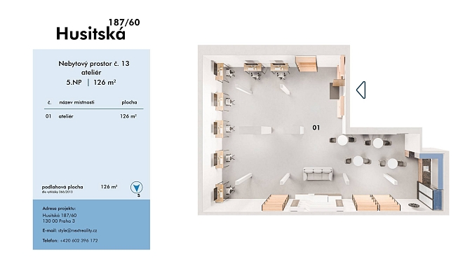 Prodej prostor půdní prostor 126 m², Husitská, Praha-Žižkov