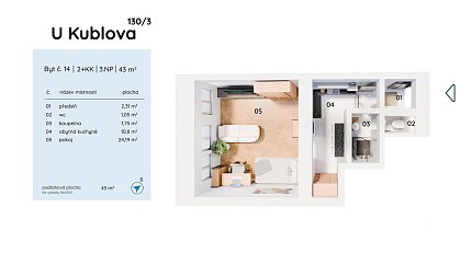Prodej bytu 1+1 43 m², U Kublova, Praha-Podolí